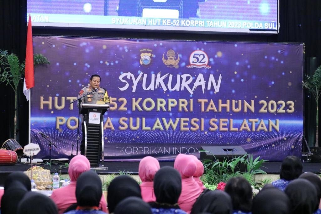 ASN Polda Sulsel menggelar syukuran dalam rangka Hut KORPRI ke 52 di Sandeq Ballroom Hotel Claro Makassar, Rabu (29/11/2023).