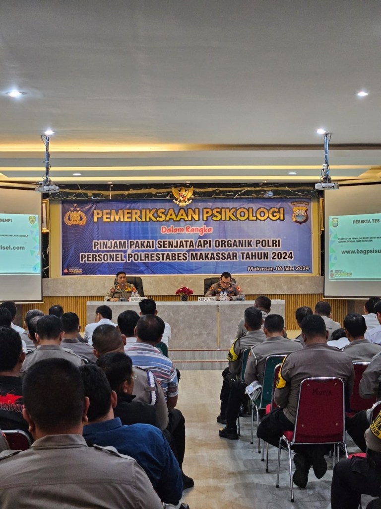 Kompol Muhammad Asep Muharam S.Psi., M,Psi., Psikolog selaku Kasubbug Psipers Psikologi Biro SDM Polda Sulsel, menyampaikan kegiatan yang diikuti sekitar 1000 Personel Polri ini bertujuan mengetahui kondisi psikologis personil dan merupakan pemeriksaan kondisi psikis bagi personel yang akan mengajukan permohonan pinjam pakai senpi, dengan demikian setiap personil polri yang membawa senjata api memahami tanggung jawab yang menyertainya dan memiliki kestabilan psikologis yang dapat dipercaya.