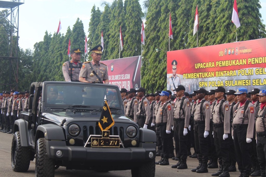Wakapolda Sulsel Brigjen Pol. Nasri, S.I.K., M.H., didampingi Pejabat Utama Polda Sulsel Pimpin Upacara Pembukaan Pendidikan Pembentukan Bintara Polri Gel.II T.A. 2024 di Lapangan Upacara SPN Polda Sulsel, Senin (22/07/24).