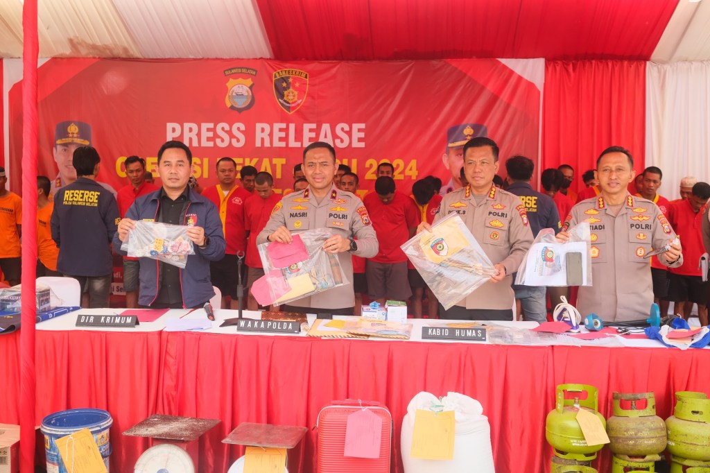“Jadi yang kami rilis hari ini adalah para pelaku kriminal atau penyakit masyarakat. Mereka ini diamankan selama operasi Pekat Lipu 2024 dari Polda Sulsel dan jajaran Polda Sulsel,” ungkap Wakapolda Sulsel kepada wartawan.