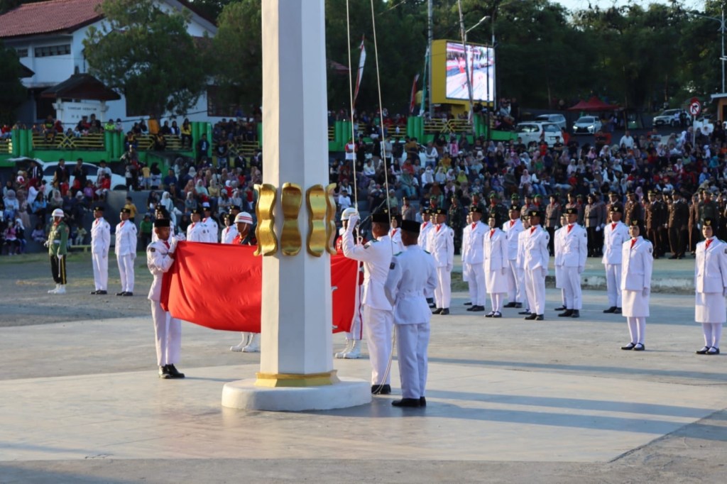 Upacara penurunan duplikat sang merah putih HUT Proklamasi Kemerdekaan RI ke 79 tahun 2024 Kab. Soppeng, berjalan baik.