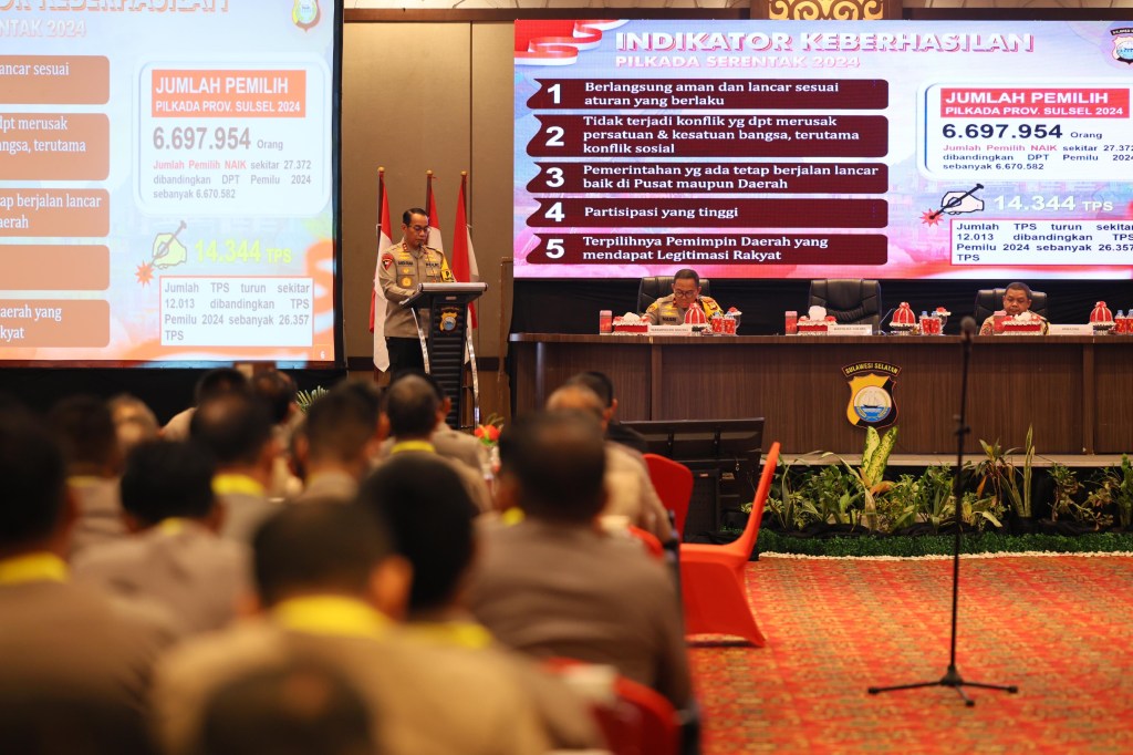 Kapolda Sulsel Irjen Pol. Andi Rian R. Djajadi memberikan pembekalan kepada Kapolsek dan Kapolsubsektor jajaran Polda Sulsel dalam rangka Pengamanan Pilkada serentak Tahun 2024.