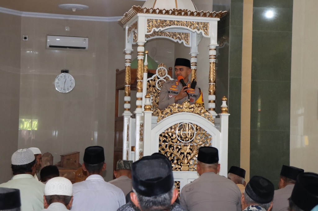 tentang program dan tujuan safari Jumat tersebut yaitu untuk menjalin silaturahmi dengan warga,sekaligus menyampaikan perkembangan situasi Kamtibmas dan potensi kerawanan di wilayah hukum Polres Soppeng khususnya menjelang Pilkada serentak tanggal 27 November 2024.