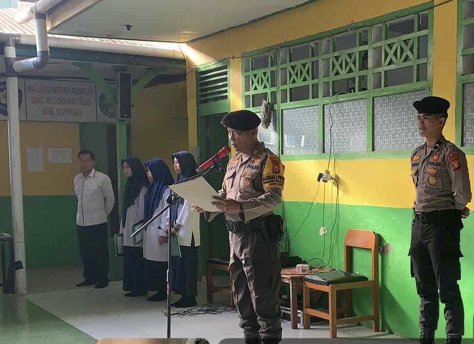 Serentak seluruh Pejabat Utama (PJU) dan Kapolsek Jajaran Menjadi Inspektur Upacara (IRUP) dalam upacara bendera di SMU/SMK Sederajat yang ada di Kabupaten Soppeng.Senin 7/10/2024.