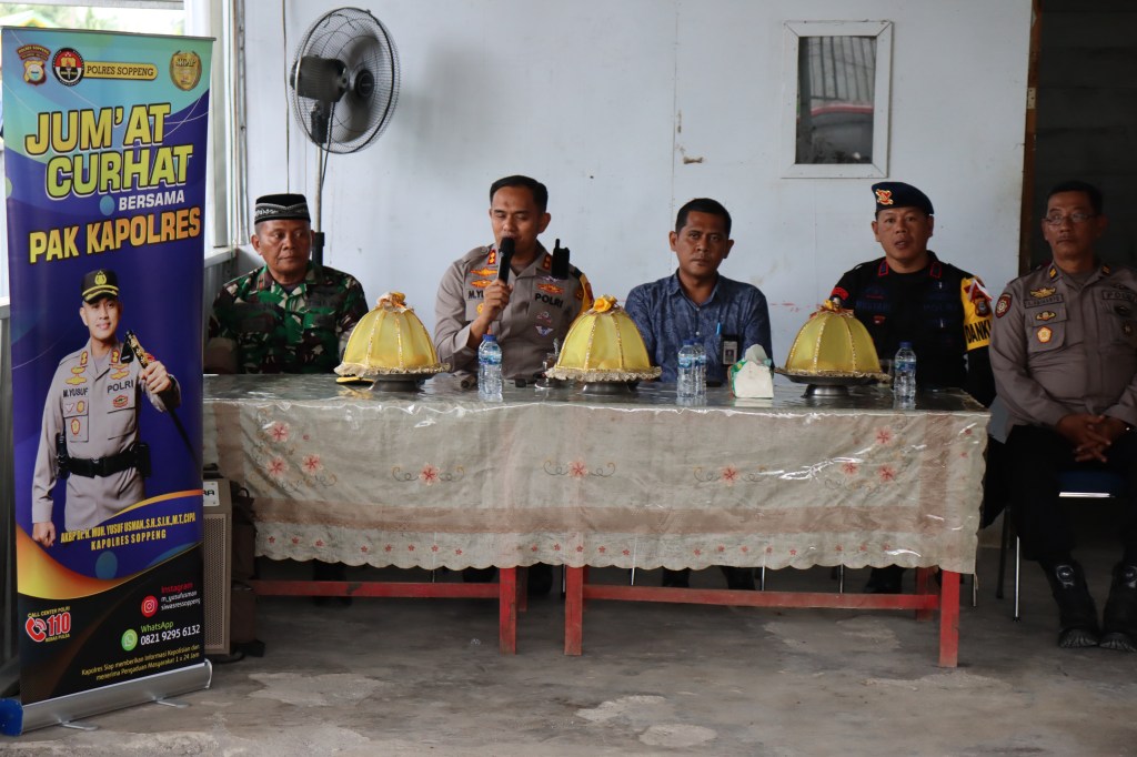 Polres Soppeng menggelar giat Jumat Curhat kali ini dilaksanakan di Warkop Segitiga Cangadi Kelurahan Appanang Kecamatan Liliriaja Kabupaten Soppeng,Jumat 11 Oktober 2024