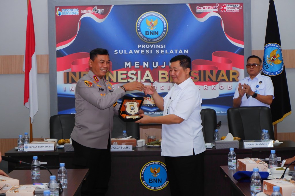 Kapolda Sulawesi Selatan, Irjen Pol. Yudhiawan S.H., S.I.K., M.H., M.Si., melakukan kunjungan silaturahmi ke Kantor Badan Narkotika Nasional (BNN) Provinsi Sulawesi Selatan, Rabu (16/10/24).