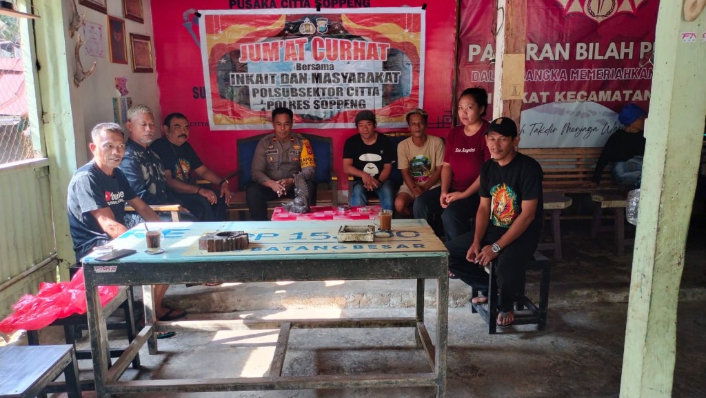 Kasubsektor Citta Ipda Alimuddin S.Sos bersama personel melaksanakan giat Jumat curhat bertempat di Warkop milik A.Borong di Desa Citta Kec. Citta Kab. Soppeng.