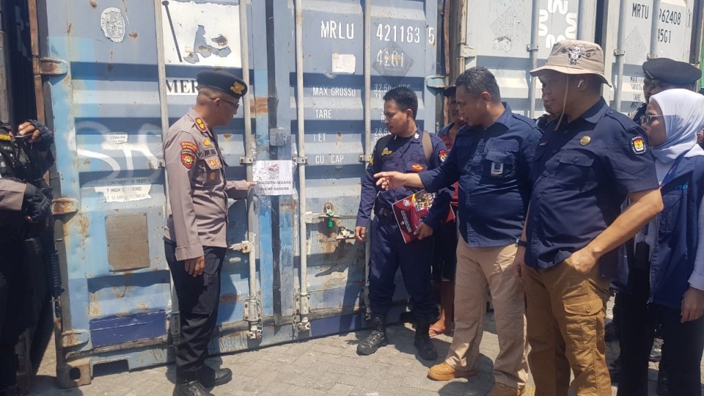 Polda Sulsel melakukan Pengawalan proses Striping konteiner (open seal) untuk pendistribusian logistik Pilkada berupa surat suara calon Kepala Daerah ke 18 Kabupaten Sabtu 19 Oktober 2024 pukul 10.00 wita, di Lapangan 100 (Dermaga Pelabuhan Soekarno Hatta)