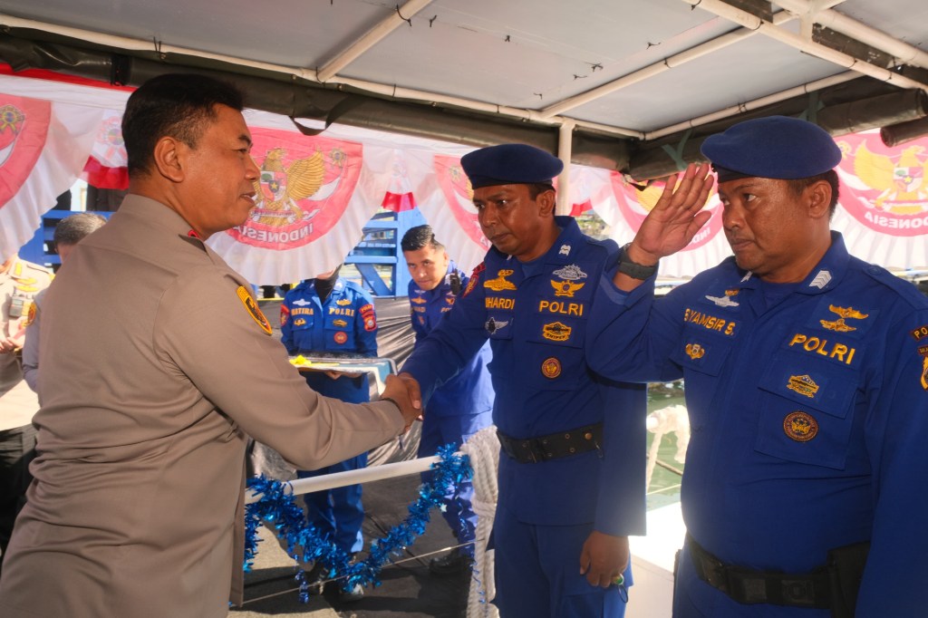 Kapolda Sulawesi Selatan, Irjen Pol. Yudhiawan S.H., S.I.K., M.H., M.Si., meresmikan Kapal Patroli C1-3012 Sikatan dalam sebuah upacara yang dilaksanakan di Dermaga Mako Direktorat Kepolisian Perairan dan Udara (Ditpolairud) Polda Sulsel, Selasa (22/10/24). Kegiatan tersebut turut dihadiri Wakapolda Sulsel, Brigjen Pol Nasri, S.I.K., M.H., serta para pejabat utama Polda Sulsel.