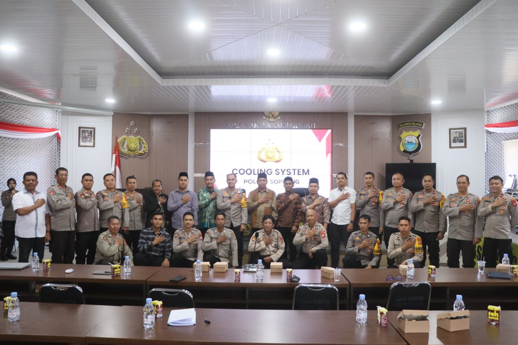 Polres Soppeng melaksanakan kegiatan Cooling System Pilkada 2024 yang dihadiri oleh Para Kapolsek Jajaran Polres Soppeng, Da’i Mitra Polri dan Da’i Polri Polres Soppeng. Bertempat di aula Tantya sudhirajati Mapolres Soppeng. Rabu, 23 Oktober 2024.