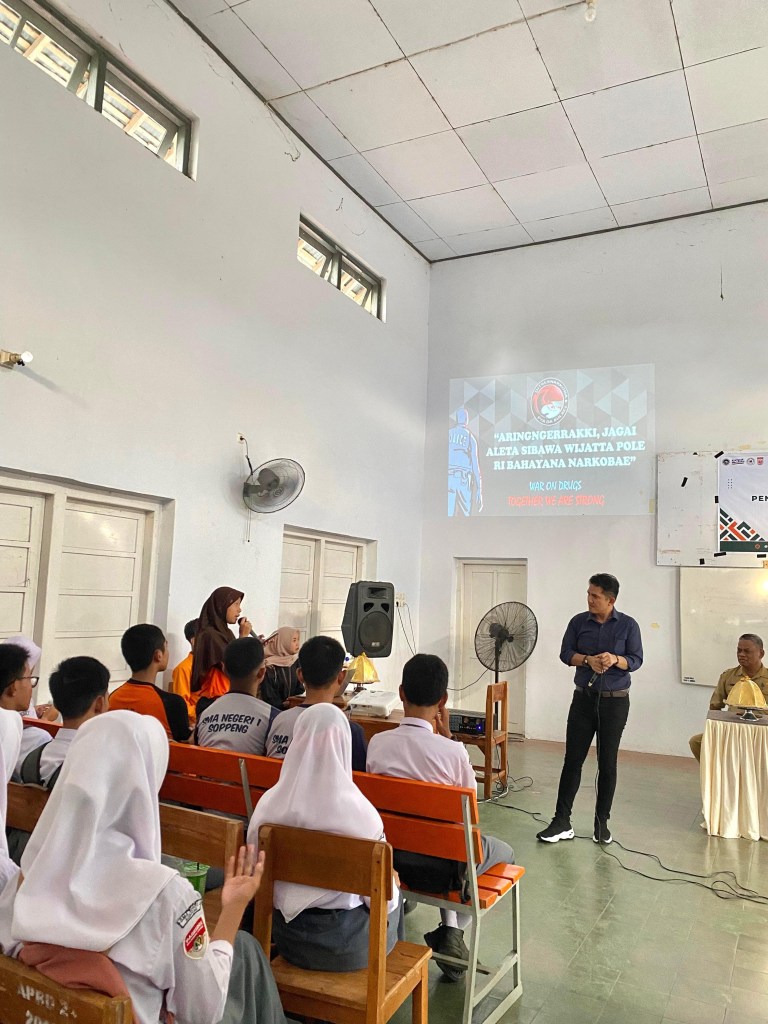 Kasat Resnarkoba Iptu Ichsan . mengatakan “Kegiatan ini merupakan Kegiatan penyuluhan Pencegahan dan memberikan edukasi Kepada Pelajar SMA yang ada di Kabupaten Soppeng agar tidak mencoba-coba untuk menggunakan Narkoba karena Pengguna dan Pengedar Narkoba sama-sama terjerat UU No 35 Tahun 2009.