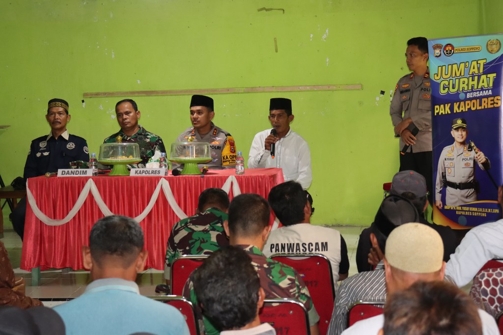 Pada Jumat curhat tersebut Kapolres Soppeng AKBP Dr. H Muh.Yusuf Usman dalam sambutannya mengungkapkan terimaksih kepada kehadiran nya dalam giat Jumat Curhat ini Karna merupakan wadah mendengar curahan Hati dari masyarakat dan berusaha mencari solusi dan bukan hanya dari Polres Melaksanakan Jumat curhat tetapi Polsek Jajajaran Juga melaksanakan terang Kapolres.