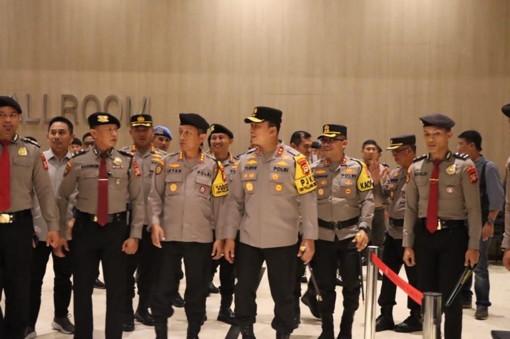 Kapolda Sulsel Irjen Pol Yudhiawan, SH.,S.IK.,M.Si dan Wakapolda Brigjen Pol Nasri, S.IK., MH memantau langsung Pelaksanaan Debat Publik Kedua Pasangan Calon Bupati dan Wakil Kepulauan Selayar, yang berlangsung di Hotel Gammara Makassar, Selasa (12/11) malam.