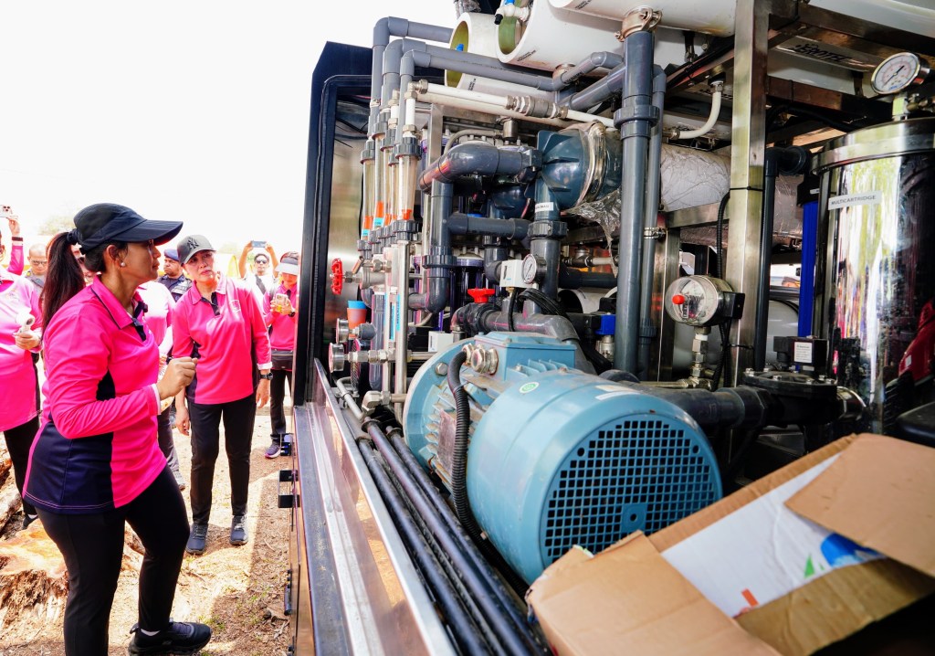 Flores Timur, 14 November 2024 — Ketua Umum Bhayangkari, Ny. Juliati Sigit Prabowo, meninjau langsung proses penyaluran air bersih bagi para pengungsi korban erupsi Gunung Lewotobi Laki-laki yang ditempatkan di Posko Pengungsian Kobasoma, Desa Kobasoma, Kecamatan Titehena, Kabupaten Flores Timur. Air bersih yang sangat dibutuhkan ini disalurkan melalui kendaraan water treatment yang dioperasikan oleh Brimob Polda NTT.