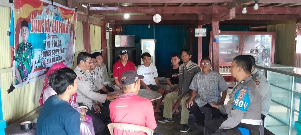 Kapolsek Liliriaja Iptu Agung Abimanyu, S. Sos bersama Personil melaksanakan kegiatan Jum’at Curhat dalam rangka Cooling System pilkada damai di Warkop Pak habe Jampuserengnge Kelurahan Appanang Kecamatan Liliriaja. Jumat, 15 November 2024.