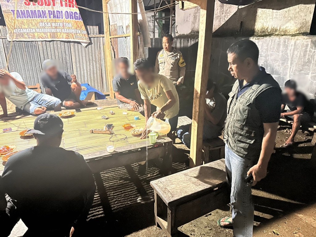 Kapolsek Marioriwawo Iptu Tajuddin mengatakan “dari operasi tersebut kami Membubarkan acara miras tersebut dan memberikan teguran secara humanis dan terukur serta menghimbau untuk tidak lagi mengkomsumsi minuman keras (miras).