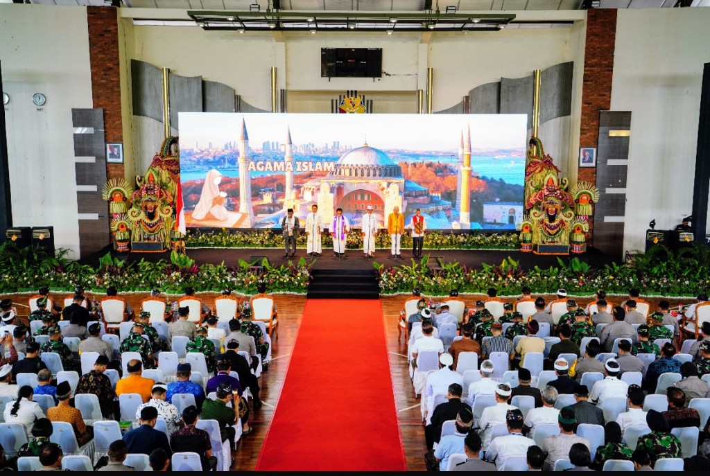 Acara doa bersama lintas agama bersama TNI-Polri dan masyarakat Bali ini digelar di GOR Yudomo, Praja Raksaka Kepaon, Denpasar, Bali, Selasa (19/11/2024). Hadir pula Panglima TNI Jenderal Agus Subiyanto.