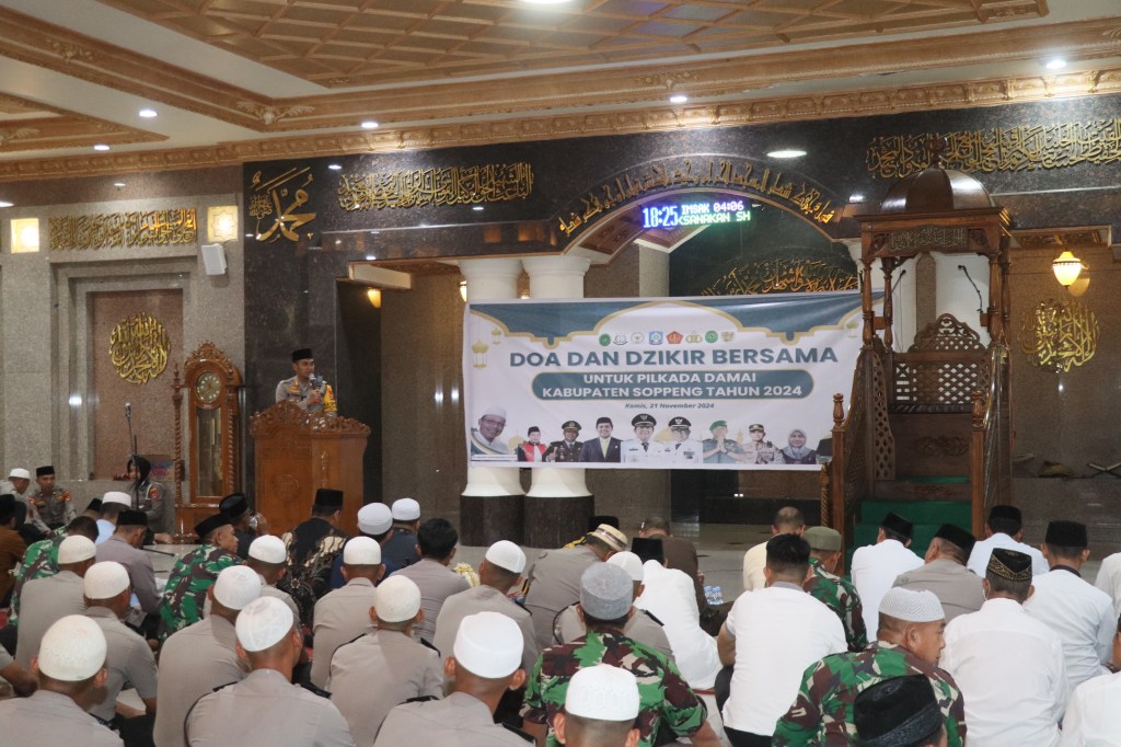 Dalam rangka Cooling System Pilkada Damai 20204 Polres Soppeng menggelar Doa dan Dzikir bersama dalam rangka Pilkada damai 2024 bertempat di Masjid Agung Darusssalam Watansoppeng Kamis 21/11/2024 Sore.