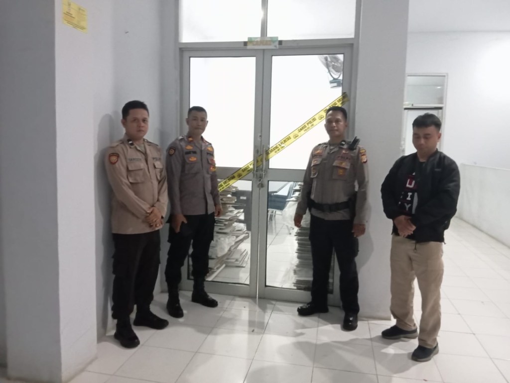 Selaku Wakil Pengendali pengamanan Rekapitulasi dan Penghitungan Suara tingkat PPK,Kabag SDM AKP Sulaiman Abu SH.bersama KBO Sat Binmas Polres Soppeng IPTU Amat Yani memantau dan mengecek Gudang penyimpanan Logistik Pemilukada PPK Kecamatan Liliriaja serta petugas jaga.
