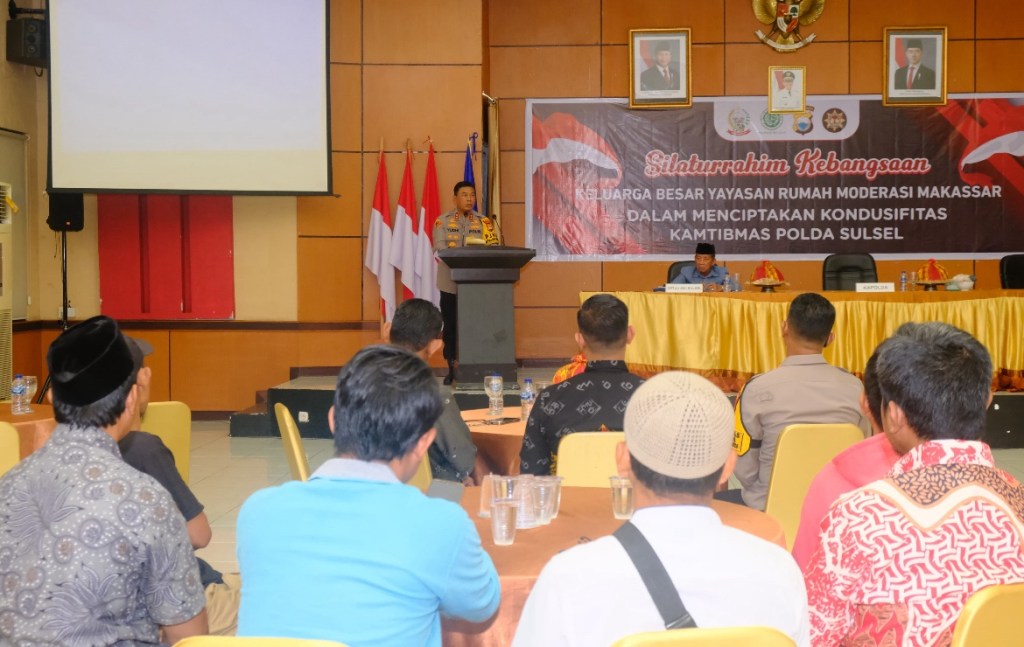 Kapolda Sulawesi Selatan, Irjen Pol. Yudhiawan, S.H., S.I.K., M.H., M.Si., bersama sejumlah Pejabat Utama Polda Sulsel menghadiri kegiatan Silaturahmi Kebangsaan Keluarga Besar Yayasan Rumah Moderasi Makassar di Aula Kantor BPSDM, Jl. Sultan Alauddin, Kota Makassar.