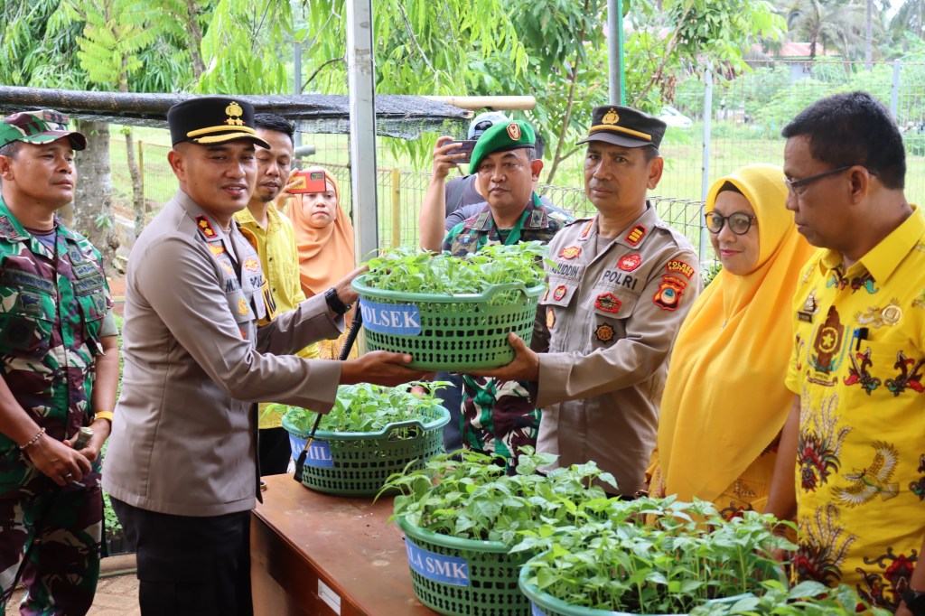 Kemudian dilanjutkan dengan penyerahan secara simbolis bantuan bibit Cabai Tampaning oleh Kapolres Soppeng AKBP Dr.H.Muh.Yusuf Usman,S.H,S.I.K,M.T.CIPA serta Dandim 1423/Soppeng.Letkol inf Reinhard Haposan Manurung SP.d , ke Kapolsek Marioriwawo ,Danramil Marioriwawo,Kepala Sekolah SMK Tanjonge,Kepala sekolah SMP 1 Marioriwawo,Kepala sekolah SD Pajalesang,Kepala TK Barata dan Ketua Gapoktan Desa Goarie.