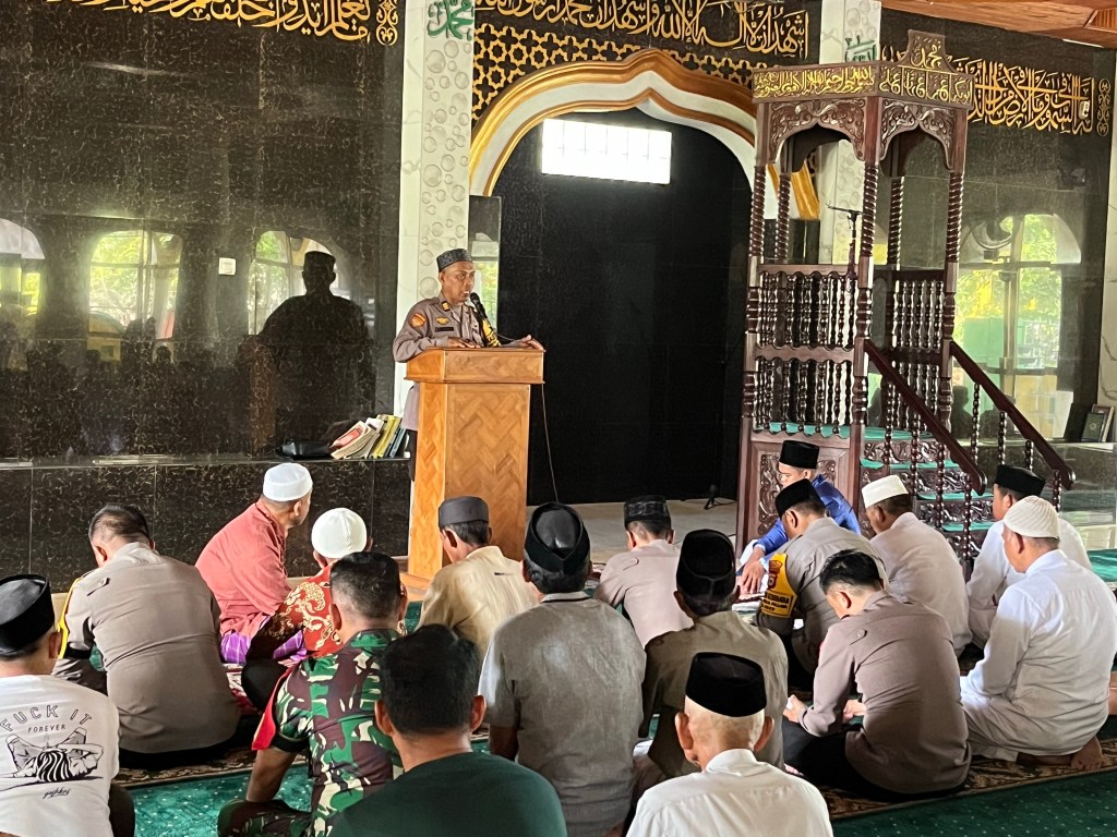 Setelah pelaksanaan Shalat Jumat berjamaah Kabag Ren Polres Soppeng AKP Sainuddin S.Sos berdiri dihadapan jamaah dan menyampaikan pesan atau himbauan kamtibmas.