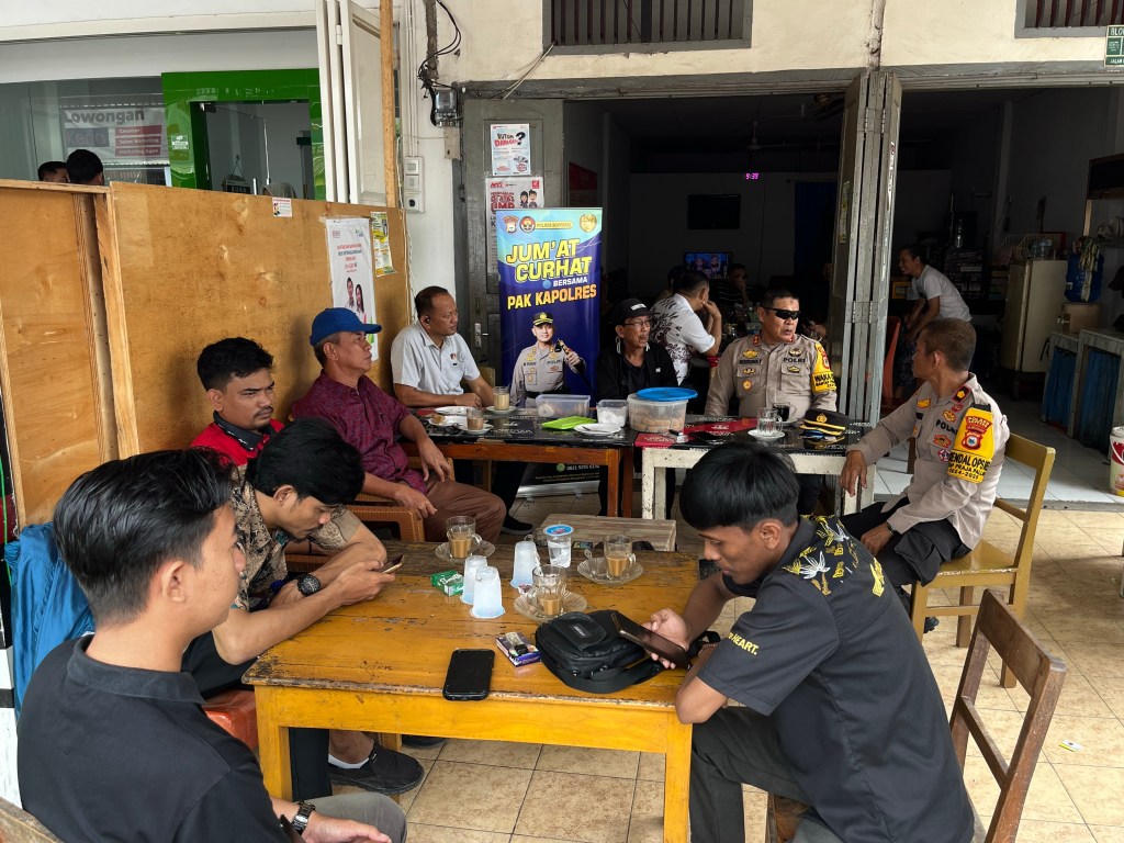 Dalam rangka Cooling System pasca Pilkada 2024 Polres Soppeng menggelar Jumat curhat bersama warga masyarakat kelurahan Lemba Kecamatan Lalabata Kab.soppeng serta pengunjung Warkop bertempat di Warkop Sejahtera mandiri Jln.Kemakmuran Watansoppeng.Jumat 13/12/ 2024