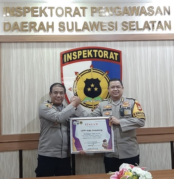 Mewakili Kapolres Soppeng Kasiwas Polres Soppeng AKP Husain SH.menerima langsung penghargaan Tersebut dari Irwasda selaku Ketua Saber Pungli Provinsi Sulawesi Selatan Kombes Pol Ai Arfiandi, S.H, S.I.K, M.M.