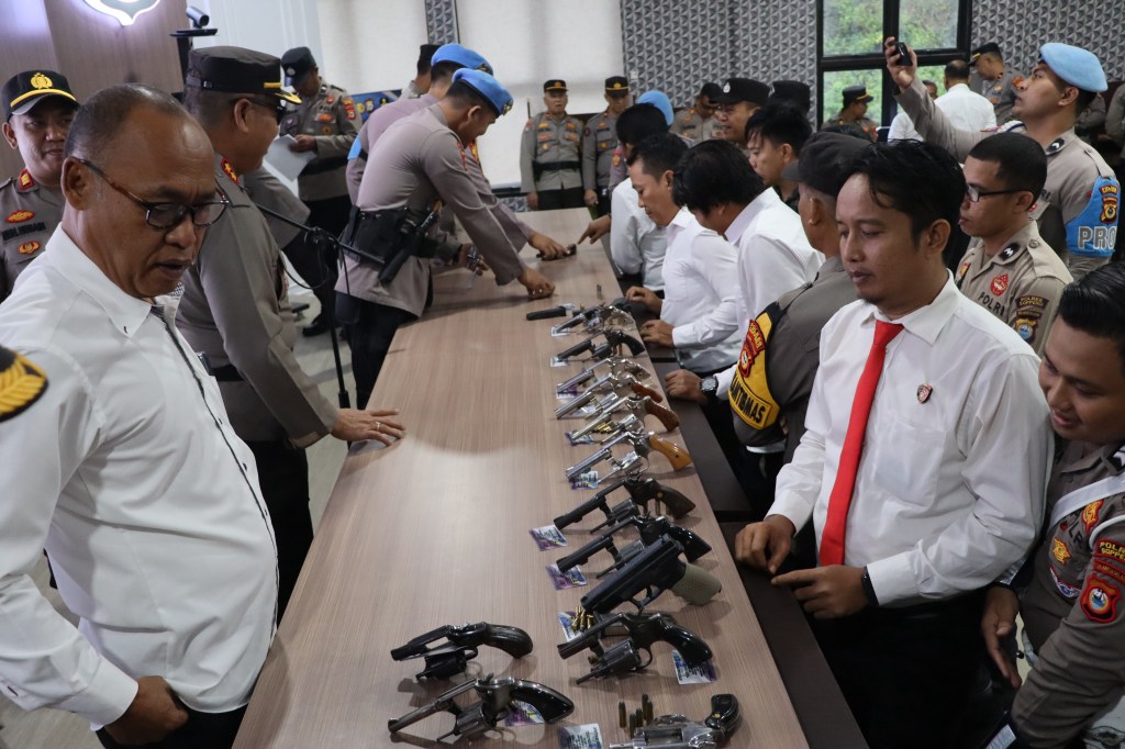 Adapun Pemeriksaan meliputi kelengkapan administrasi, kondisi fisik senjata, amunisi serta kepatuhan terhadap prosedur penggunaannya. Seluruh rangkaian kegiatan berjalan lancar tanpa ditemukan adanya pelanggaran maupun penyimpangan.