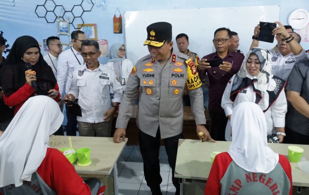 Kapolda Sulawesi Selatan, Irjen Pol. Yudhiawan, S.H., S.I.K., M.H., M.Si., melakukan peninjauan langsung pelaksanaan Program Makan Siang Gratis yang digagas oleh Asosiasi Pemerintah Desa Seluruh Indonesia (APDESI) di SMPN 1 Makassar, Jumat (27/12/2024).